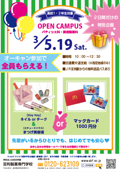 【高校2・1年生対象】3/5・19のオープンキャンパス(2日間だけの特別企画)