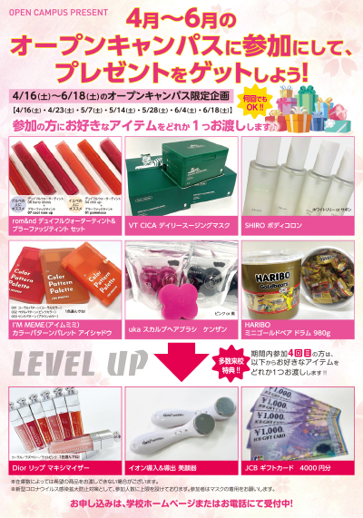 【4月16日(土)~6月18日(土)のオープンキャンパス限定企画】