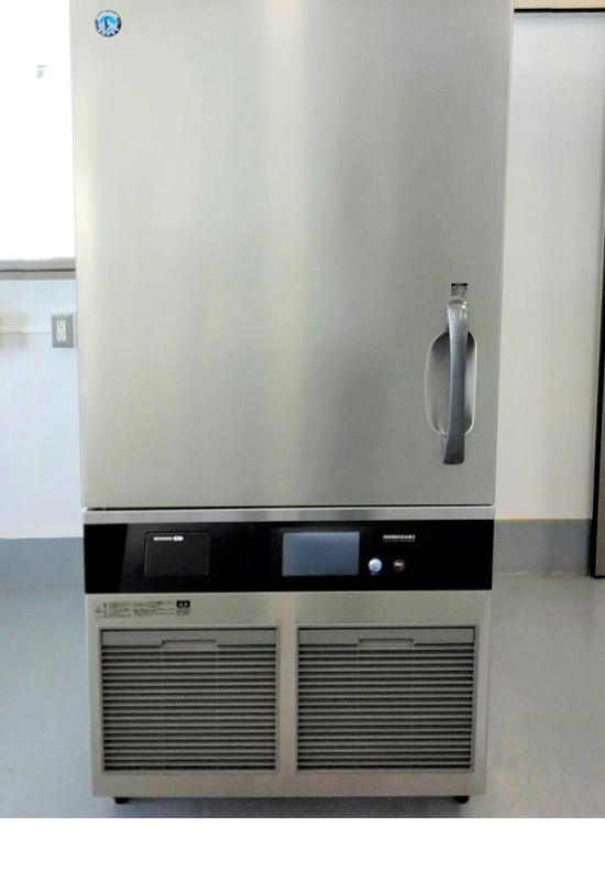 製菓実習では、焼きたてのスポンジ生地やタルト、ムース等を一気に-40℃まで冷却します。