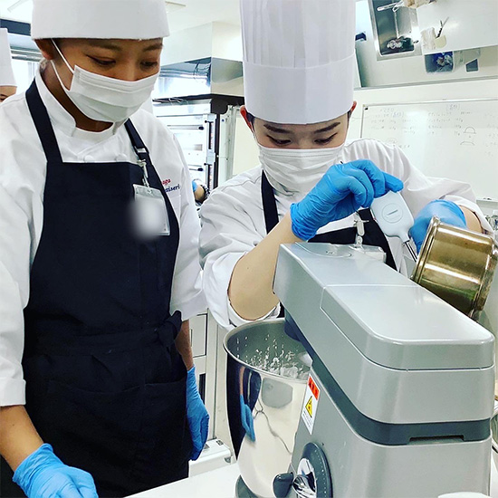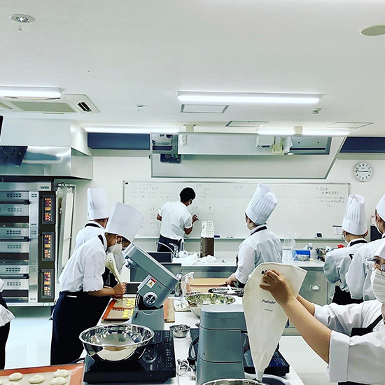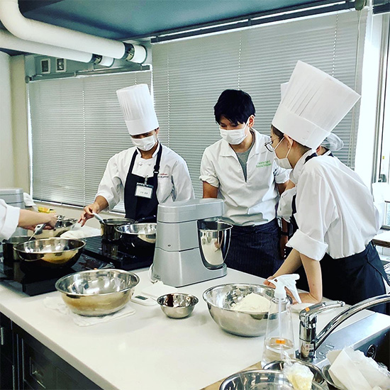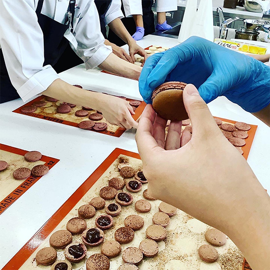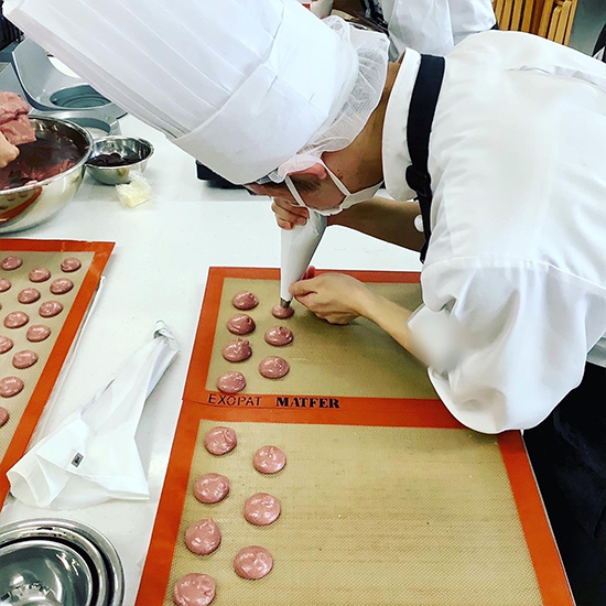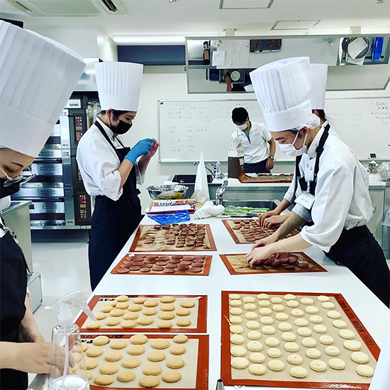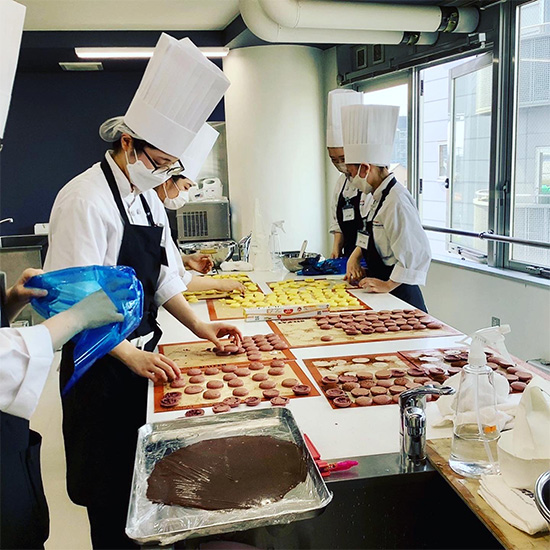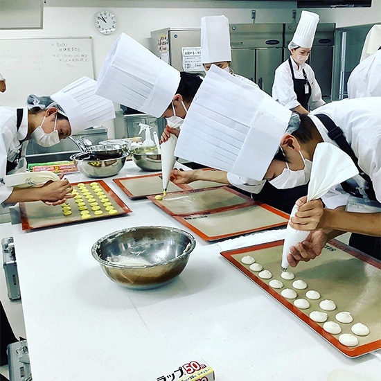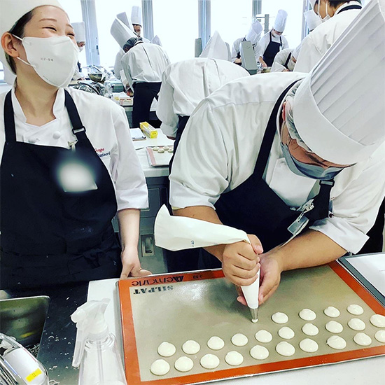 2年生は昨年から2度目となる岩﨑シェフのマカロン作りだったので、昨年よりも形を揃えて絞る事ができました。より上達でき、学生も自信を持って作業できました✨