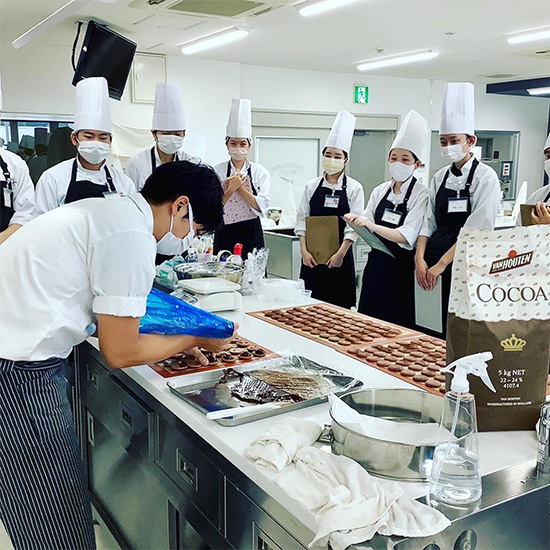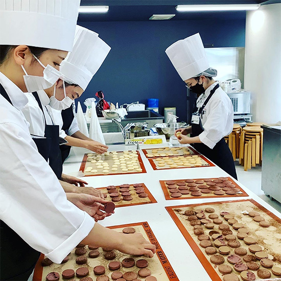 9/28(水)特別授業は、岩﨑 卓也 シェフによる授業で、1年生と2年生共に【ショコラ・ホワイト・パッション】の3種類のマカロンの実習を行いました✨