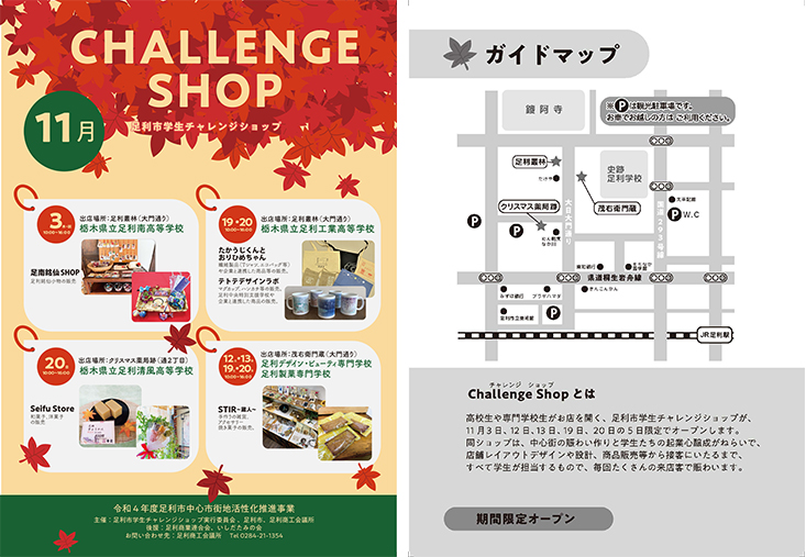 足利市内の高校生や専門学校生がお店を開く、足利市学生チャレンジショップが、11月に限定オープンします。同ショップは、中心街の賑わい作りと学生たちの起業心醸成がねらいで、店舗レイアウトデザインや設計、商品販売等から接客にいたるまで、すべて学生が担当しています。