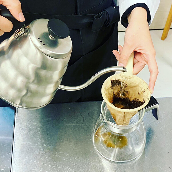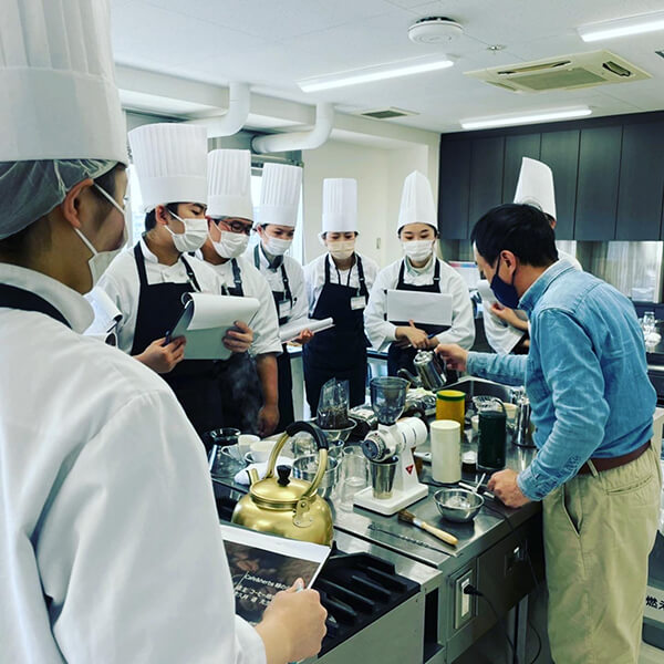 ミルの使い方や淹れるお湯の温度など非常に細かいところまでご指導いただき、学生たちは非常に勉強になりました。