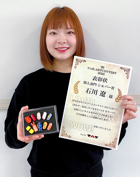 プロネイリスト専用のネイルショップ TATが主催している「ネイルアートコンテスト2021」において、トータルビューティ科ネイルコース2年生がグランプリ、シルバー賞を受賞しました!