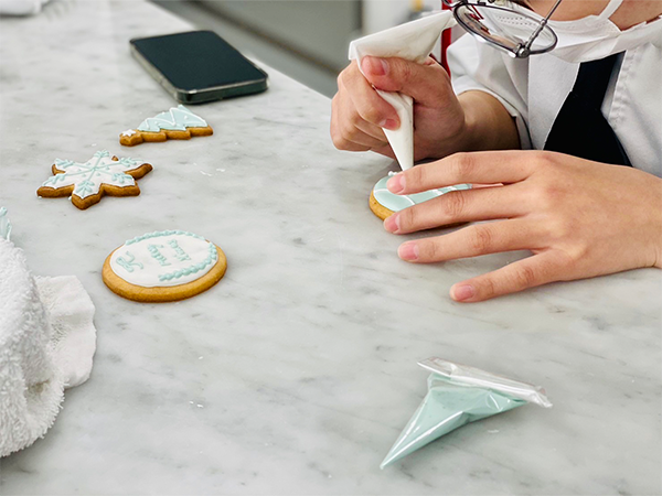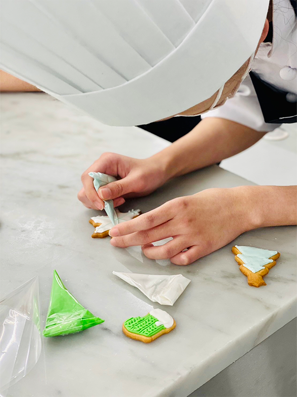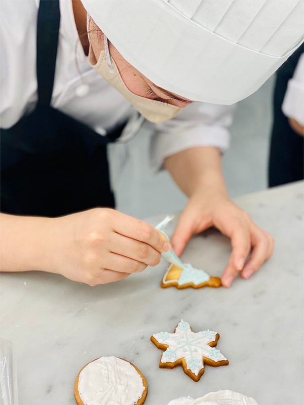 毎年、授業が行われる時期のライフイベントに合わせて実習内容を変えておりますが、今年はパティシエ科1.2年生共にクリスマスのアイシングクッキー制作の実習を行いました。