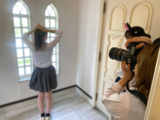 先生が実際に撮影しているときの技術や、新郎新婦さんにお願いするときの方法などを教わりながら、学生たちは楽しんで、カメラに触れることができました!
