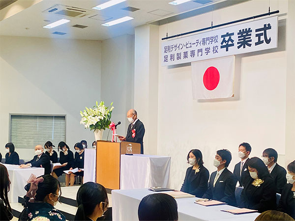 穏やかで優しい日差しが包み込む中、足利デザイン・ビューティ専門学校134名、足利製菓専門学校33名が新たな門出を迎えました。