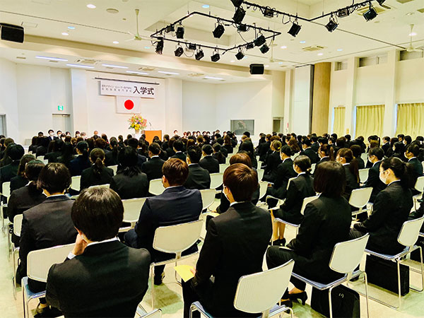 田鶴学校長は式辞の中で、「専門学校におけるこれからの学びは、自由であり、かつ無限です。来るべき社会への船出に備え、自ら新しいアイディアや発想を生み出す考える力の訓練をしていきましょう。何に興味を抱き、今後の人生をどのようにしたいと考えて入学したのか?本日の気持ちを忘れないようにしてください。」と激励の言葉を伝えました。