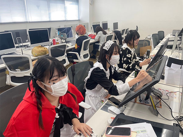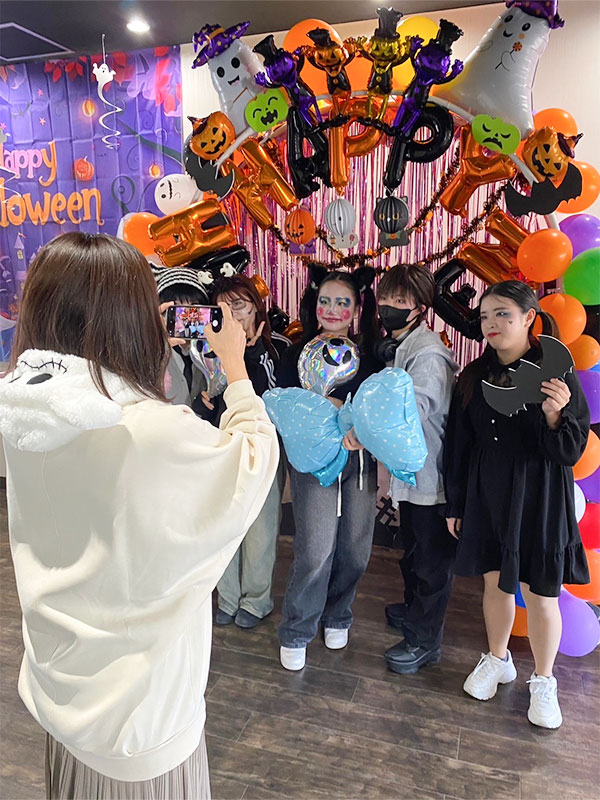 「トリックオアトリート!」と先生に声をかけるとお菓子が貰えたり、クリエイティブデザイン科学生によるフォトブースも設置され、終日賑やかな声が溢れていました。