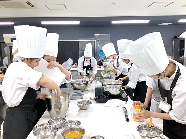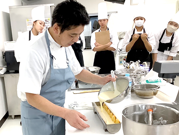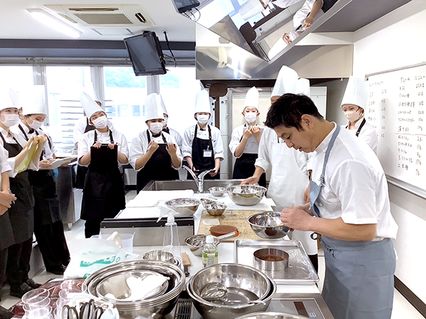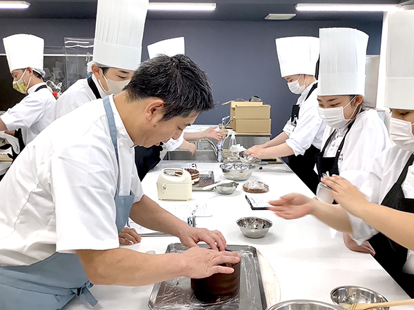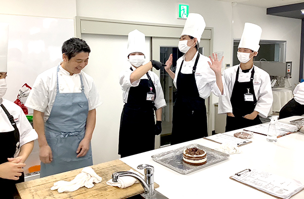 学生達は綺麗なデザインのケーキに感動しながら製作していて、味はもちろんのことながら、改めてデザイン性など見た目からも食べたくなるケーキを作ることの大切さも学ぶことができました✨️