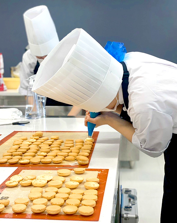 2年生は二度目のマカロン制作ですが、改めてシェフのデモンストレーションを見てたくさん学び、昨年より綺麗に仕上げることができました👏❗️