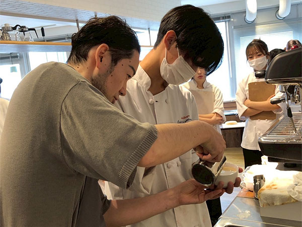 本校にて実際にドリップ、エスプレッソマシーンを使用してラテアートのやり方を指導していただきました☕️✨