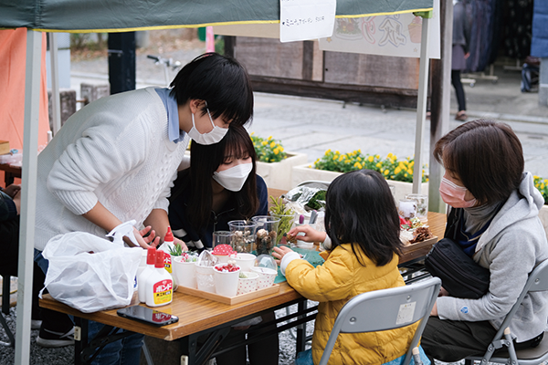 中心街の賑わい作りと学生たちの起業心醸成がねらいで、店舗レイアウトデザインや商品制作、企画、販売、接客にいたるまで、すべて学生が担当しています。