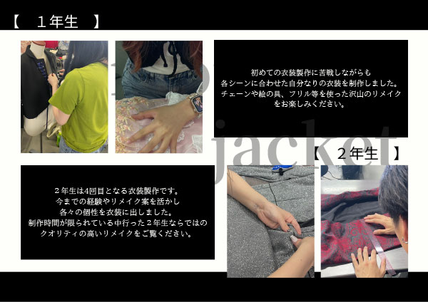 衣装製作だけでなく、ヘアメイク、音響、照明、フライヤー作成なども学生たちで作り上げます。