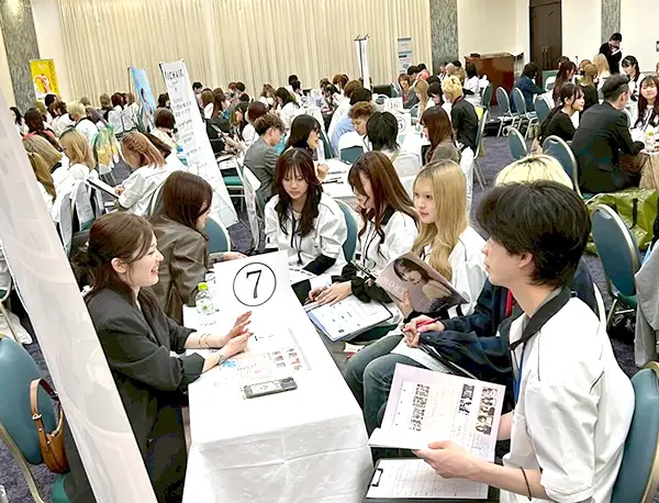 午後は関東地区の優良企業様34社にご参画いただき、ミヤコホテルにて就職ガイダンスを行いました。1年生にとっては初めての就職ガイダンス。美容サロン様の説明を直接聞き、美容業界の現状や就職活動をする上でのポイントを理解することができました。