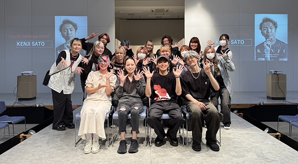美容総合科のオープンキャンパスのゲストとしてスペシャルメイクアップアーティストの佐藤健司さん、ヘアメイクアップアーティストの花岡藍さんにご来校いただきました。